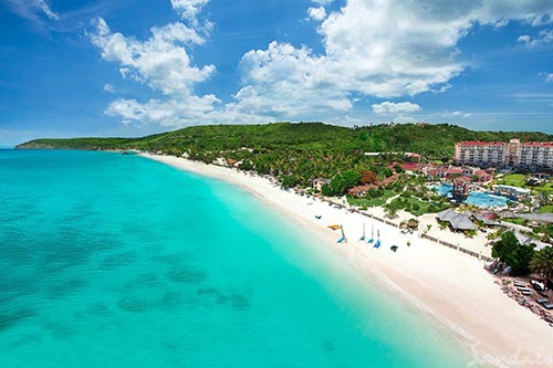 Your home away from home is Sandals Grande Antigua located on the famous Dickenson Bay. At Sandals it’s “all-inclusive” - all your meals at a choice of 7 à la carte restaurants, plus a buffet restaurant, the Bistro for daytime and late-night snacks, a pizzeria and café for delectable sweets & coffees, 11 venues to tempt your taste buds. All your drinks are included at 7 festive bars, room service from 7am-10pm, daily refreshed mini-bar, free Wi-Fi, daily activities, evening entertainment, taxes, tips – all’s included.